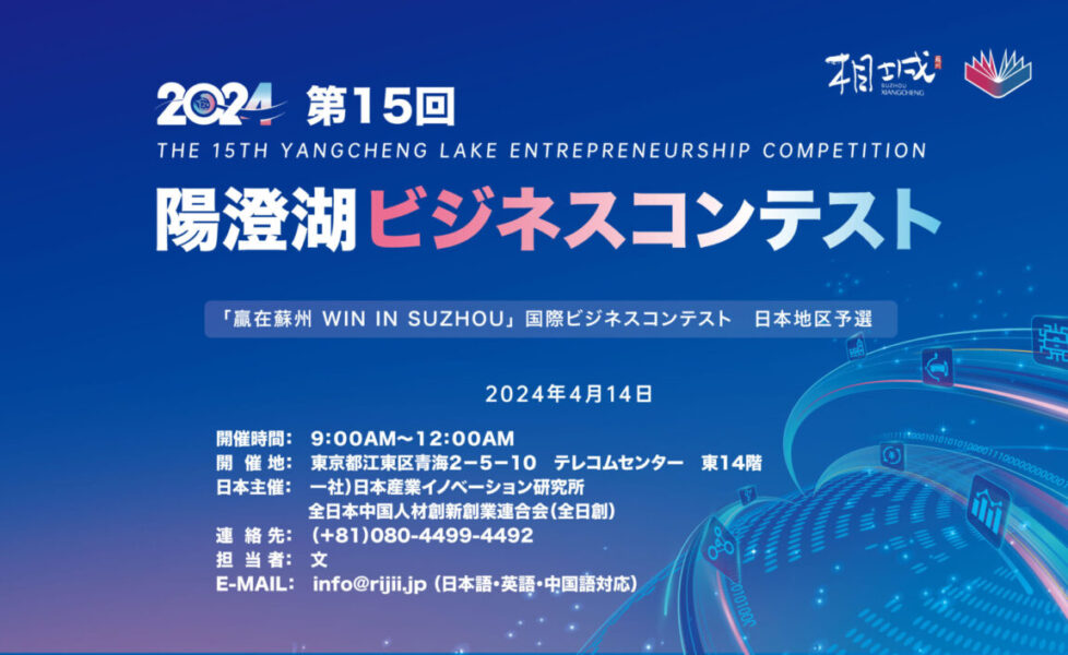 陽澄湖ビジネスコンテストは、今年で15回目を迎えます。今年の日本予選の優勝者は、蘇州市「未来への勝利」ビジネスコンテスト総決戦にも推薦されます!